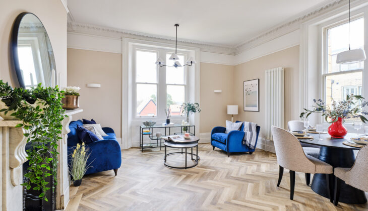 Located on the first floor, this apartment is designed for modern living. It features an exceptional open plan kitchen/dining/living area with dual aspect to the south and east.