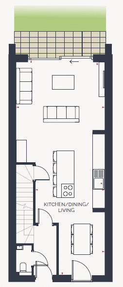 House 92 is an impressive 3 double bedroom townhouse featuring a spacious open plan dining/living area with over-sized floor-to-ceiling sliding doors leading onto south-west facing private garden and allowing plenty of natural light to come into the room.